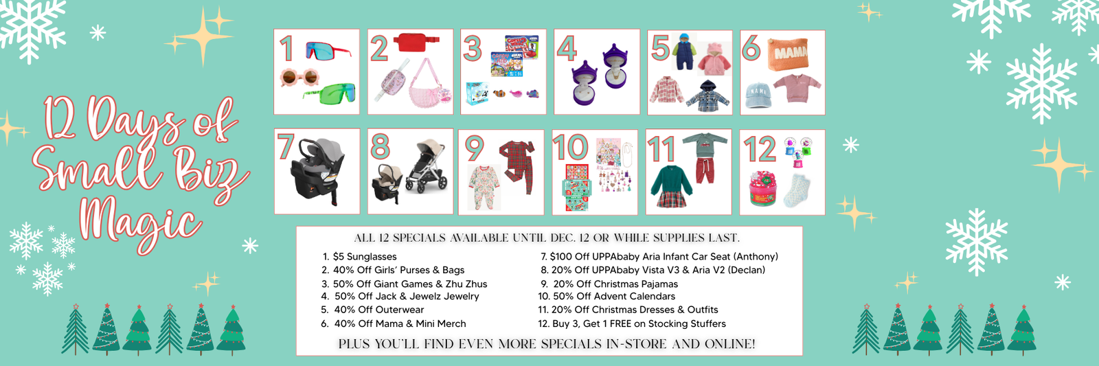 Celebrate the season with us—twelve days of festive fun, daily deals, and holiday cheer!