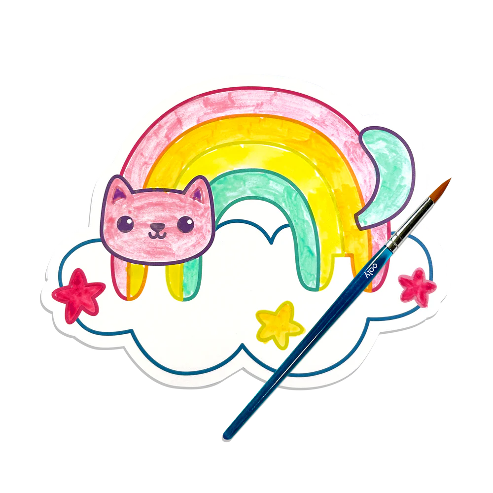 Featuring exciting paint cards, this watercolor kit is perfect for kids. Simply add water to the palette, brush on the paint, and watch the designs come to life! Designed for kids watercoloring at home, in classrooms, or on the go, this set makes painting both engaging and mess-free.