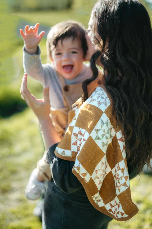 Keep messes at bay with this Quilt Contour Four Layer Burp Cloth. The contoured shape provides a perfect fit over your shoulder, making it an essential item for every feeding session.