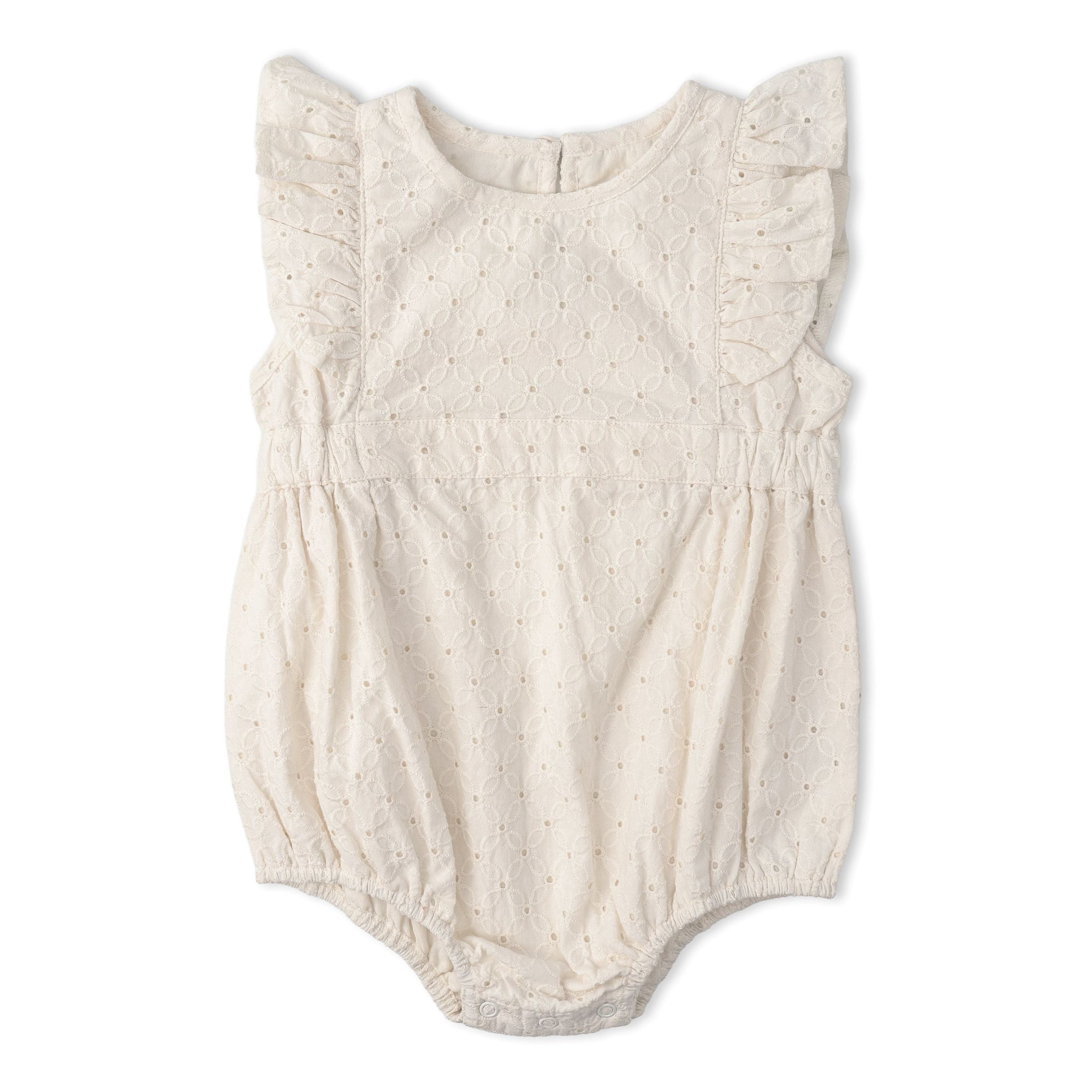 Organic Eyelet Flutter Romper / Ivory - Suite Child