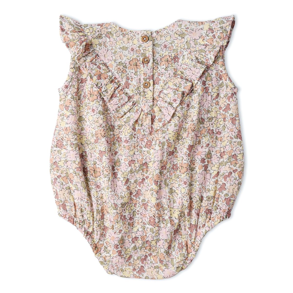 Organic Sleeveless Ruffle Bubble Romper / Pastel Bloom - Suite Child
