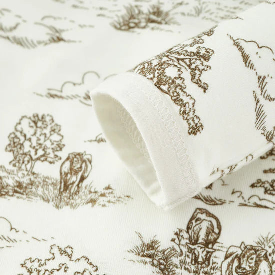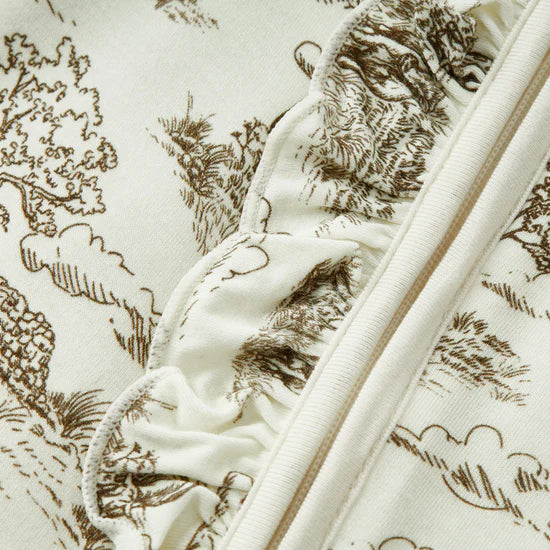 Milkbarn Luxe Stretch Ruffle Zipper Footed Romper / Country Toile - Suite Child