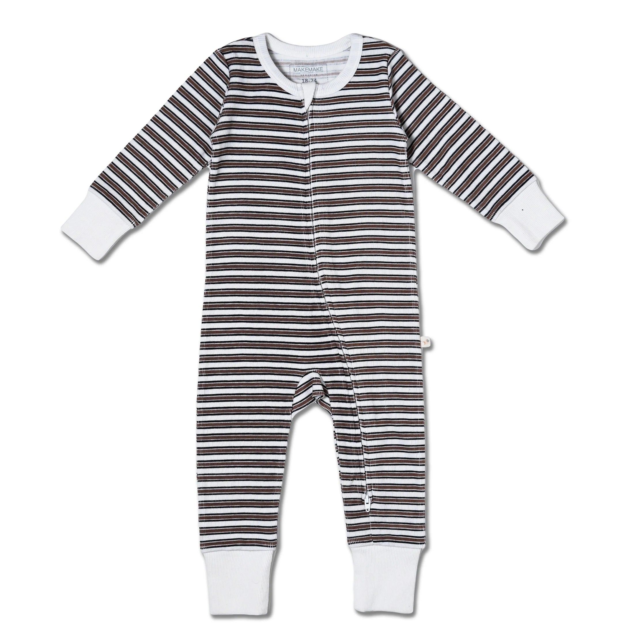 Organic 2-Way Zip Romper / Brown Stripe - Suite Child