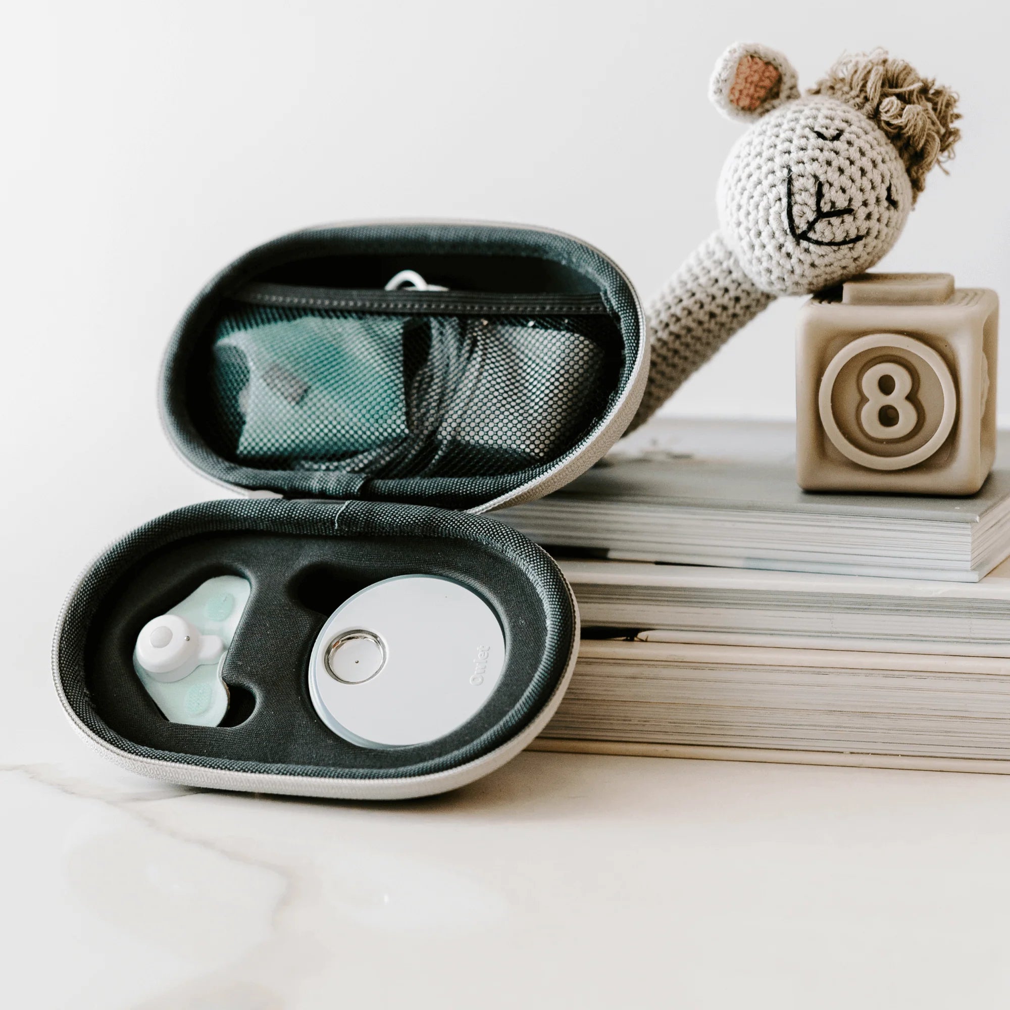 Now it’s easier than ever to take your Owlet Sock on-the-go. Store your Base Station and sock sensor in a protective foam mold and tuck your cords and extra fabric socks into the convenient mesh storage pocket. The rigid outer shell helps provide extra accident protection while also keeping your sock pieces organized.