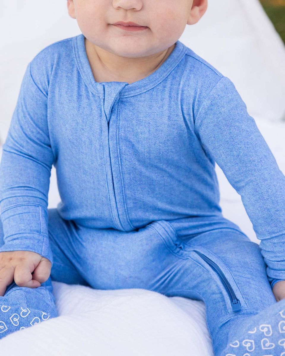 Our signature viscose from bamboo footie will be your favorite go-to. Our footie can be adorable jammies or your babe's outfit for the day! Our double zipper option makes diaper changes simple at all times of the day (and night). Zip from top or bottom without undressing your babe. Footie grips in Lev's signature hearts, cuffs on newborn and 0-3m to avoid scratching their sweet faces and our snug fit will ensure the best dressed and most snuggly babe ever!