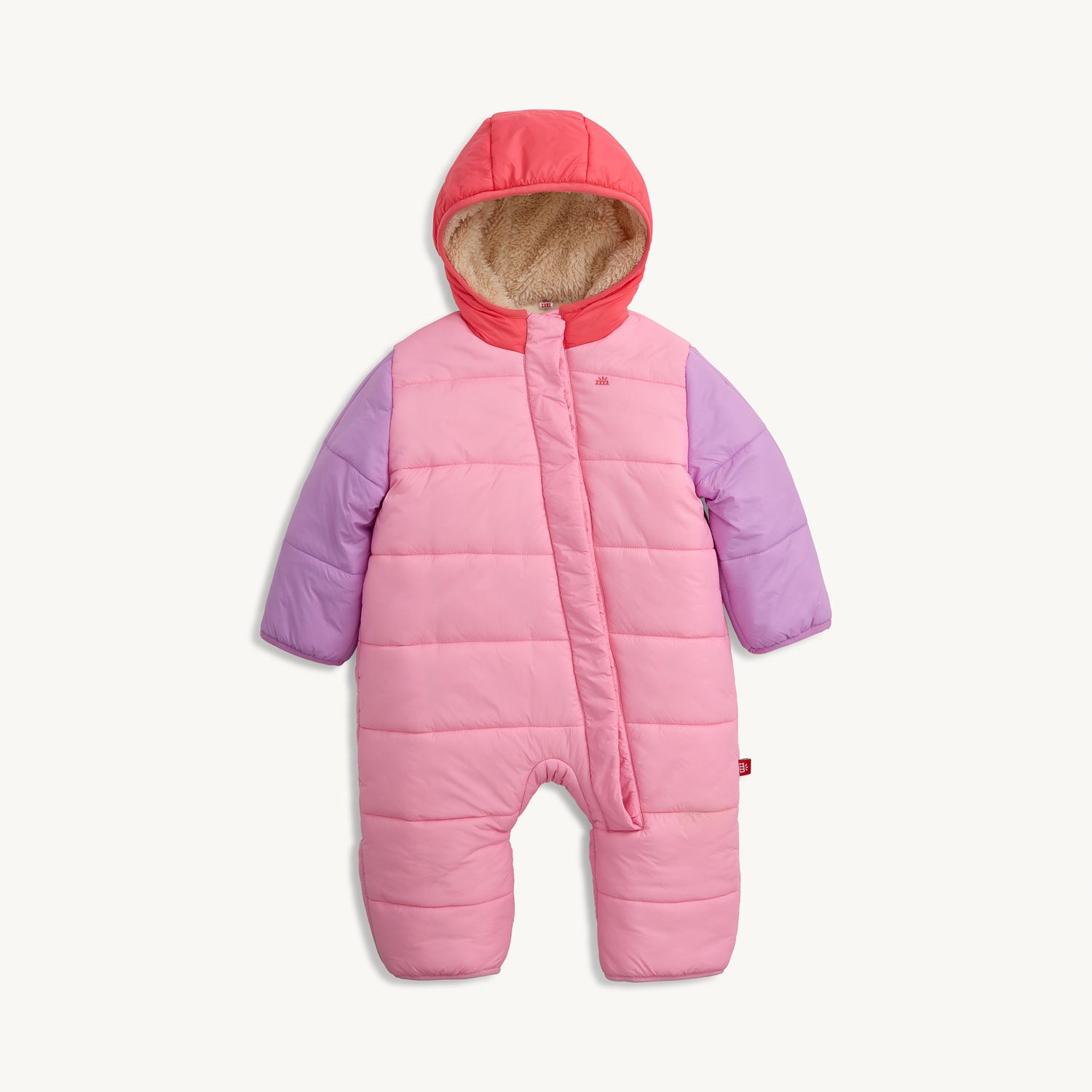 The Puffer Pram features magnetic closures, allowing you to nestle your baby quickly and quietly into full-coverage warmth on frosty days. There's room for layering inside, while a sherpa hood, fleece lining, a high collar that acts as a barrier against wind, and wind-resistant cuffs help baby feel cozy in the cold.