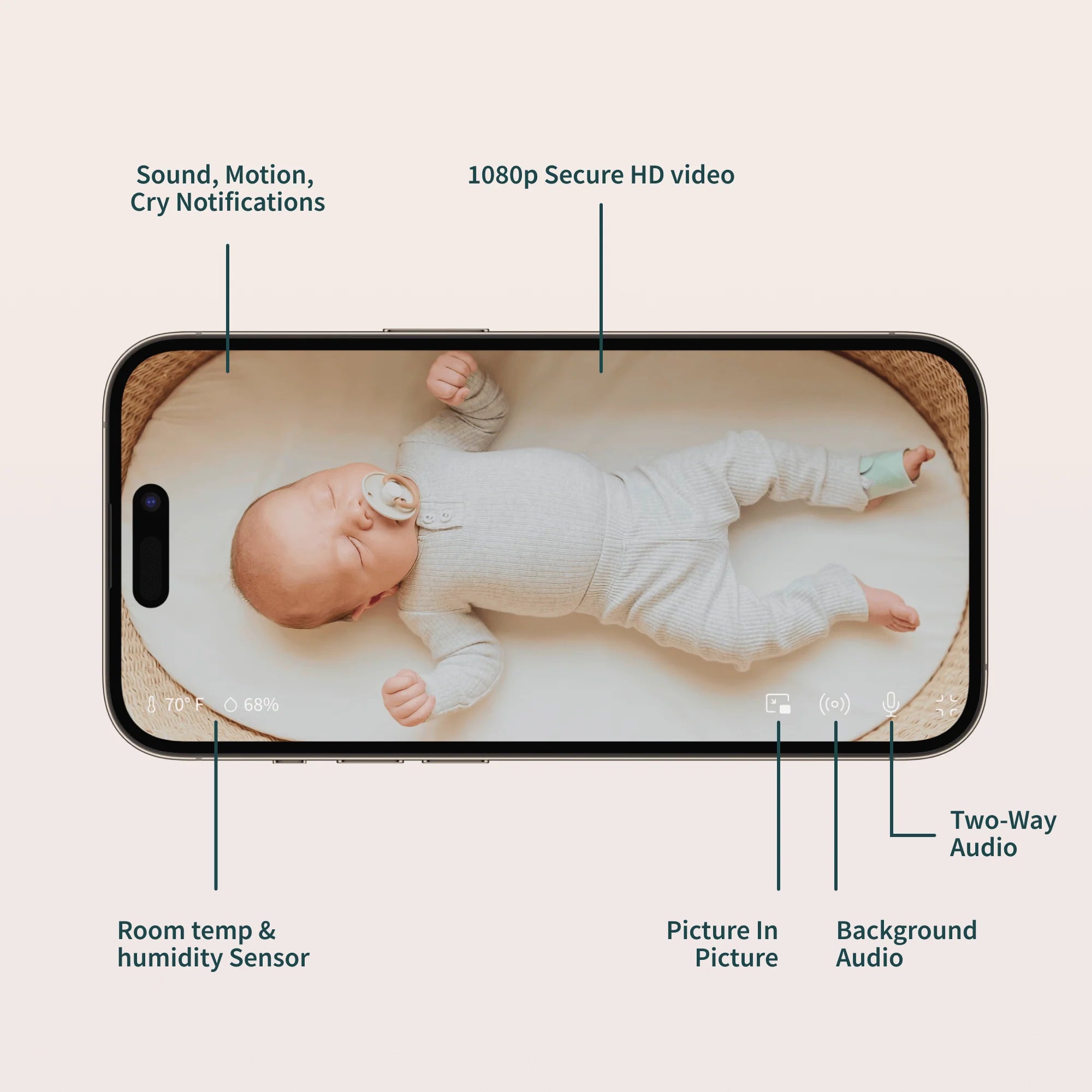 Check on Baby with HD video & night vision streamed right to your phone, with a wide-angle view & 4x zoom.