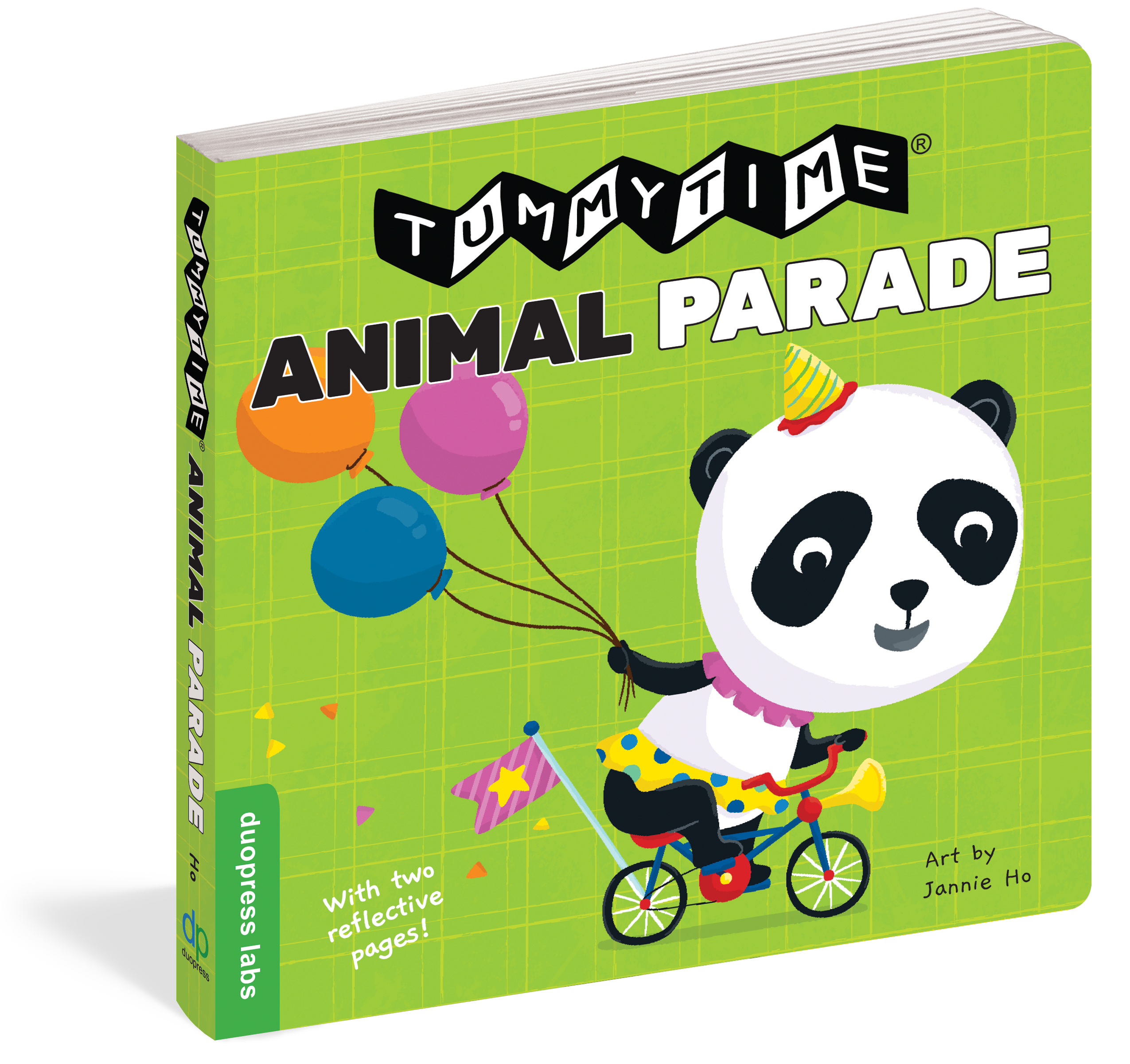 This small and sturdy accordion book opens up to stand alone in a crib, on the carpet, or on a bed, making it easy for your baby to enjoy tummy time, all the time. One side features vibrantly illustrated creatures marching merrily along (an alligator bangs a big drum, a bear carries festive balloons) and the opposite side includes high-contrast black and white patterns and animals, perfect for baby’s developing eyes. And with two reflective pages your baby can see him- or herself and practice those future smiles! Since the American Academy of Pediatrics and other top pediatric organizations around the world recommend tummy time to help “build the strength and coordination needed for rolling over, crawling, reaching, and playing” this book is not just fun, it’s also good for your baby